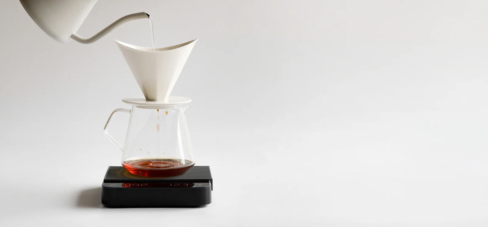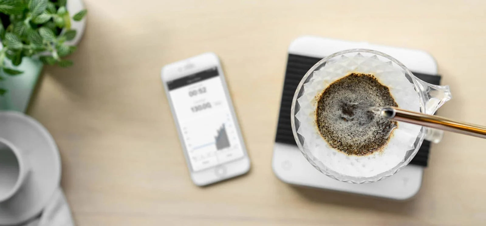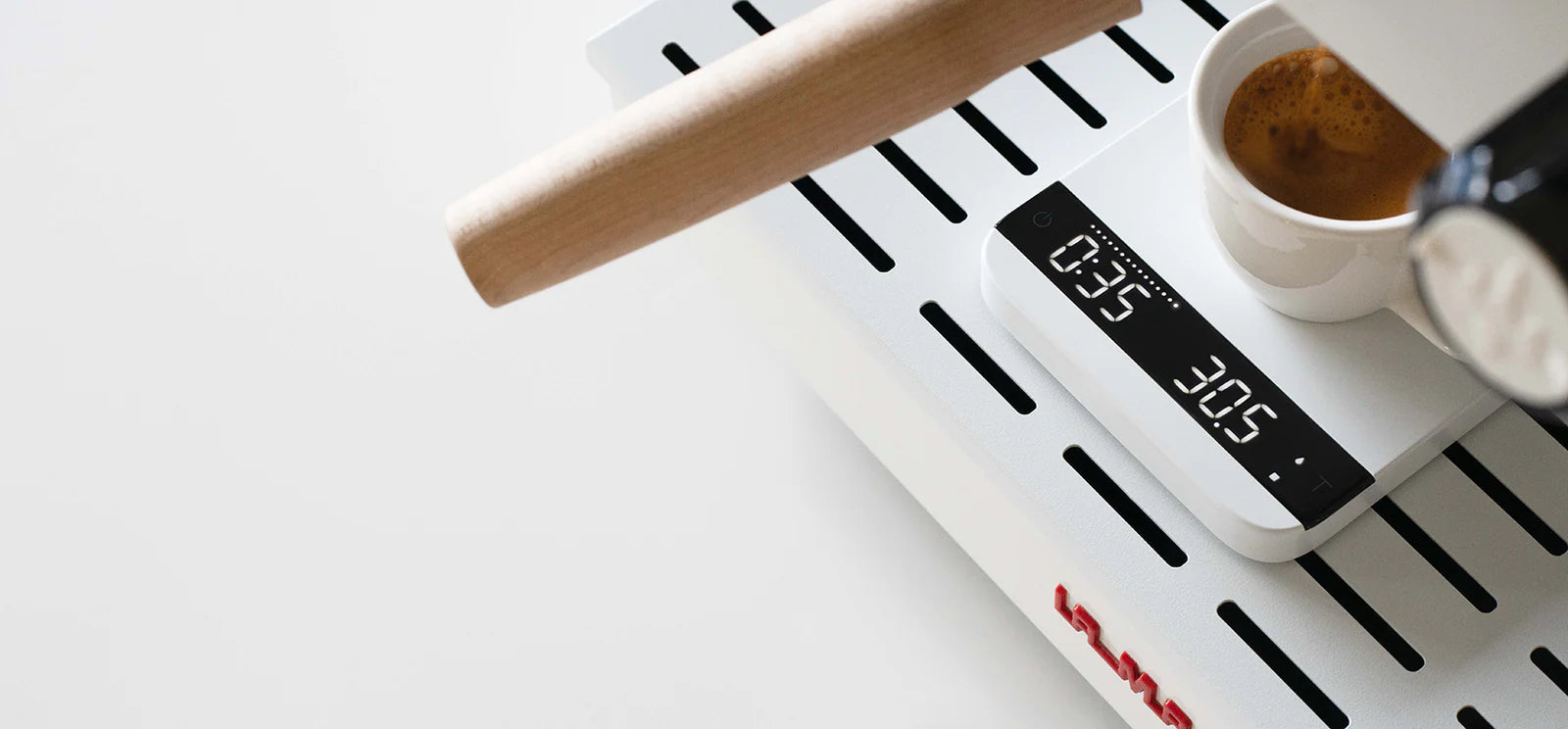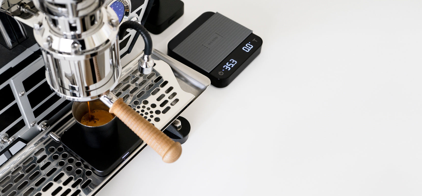 Professional-grade scale for monitoring weight, time, and flow-rate during coffee brewing.